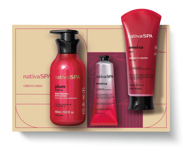 Home COFFRET 1000634 COFFRET PRESENTE NATIVA SPA AMEIXA 1000634 COFFRET PRESENTE NATIVA SPA AMEIXA SKU: 1000634 29,97 € Desconto de %. O produto encontra-se sem stock. Adicionar à wishlist Nativa Spa. Cuidado do grão à pele. Nativa SPA Ameixa: uma fragrância sensual e uma pele macia, suave e rejuvenescida. Este coffret inclui: Sabonete Líquido Nativa SPA Ameixa, 200mlCreme de Mãos Nativa SPA Ameixa, 75gLoção Hidratante Nativa SPA Ameixa, 400ml O presente perfeito! Marca Boticário Características Partilhar