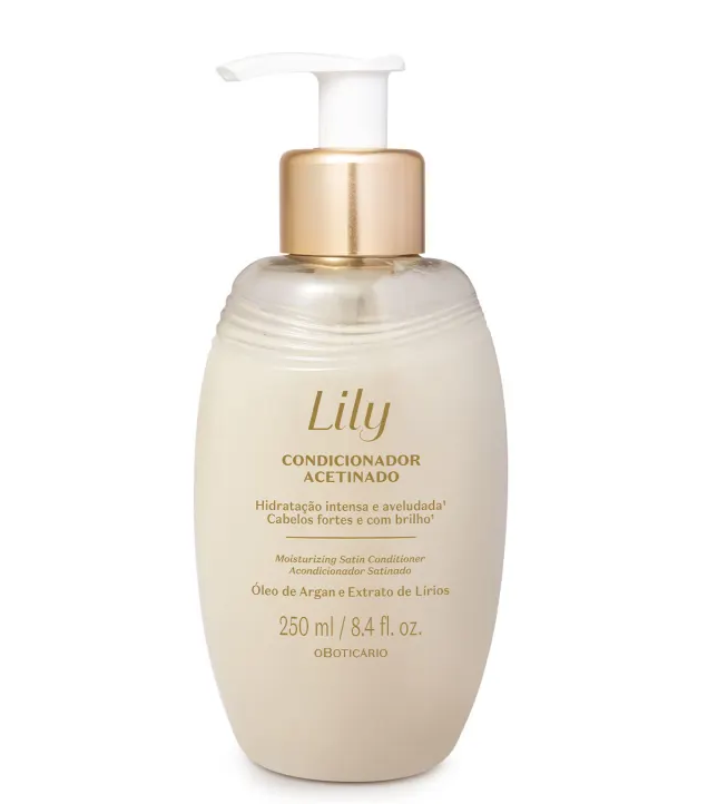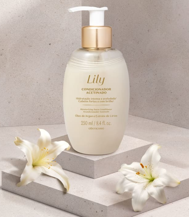 O Condicionador Acetinado Lily oferece a fragrância amada e encantadora, agora com o poder do toque aveludado também para o teu cabelo! Para todos os tipos de cabelo, oferece hidratação intensa e aveludada com um brilho radiante. Além de fortalecer os fios. Com a utilização da linha completa promove um ritual de revitalização.