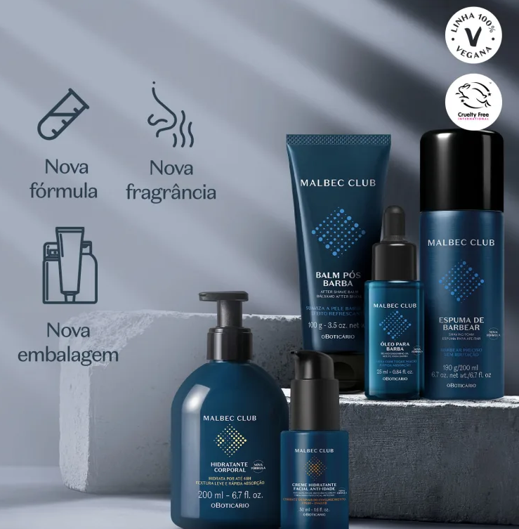 Com nova fórmula, nova embalagem e nova fragrância que traz o encontro da perfumaria e cuidados, a Linha Malbec Club aprimorou sua performance para atender às necessidades de cuidados masculinos.
