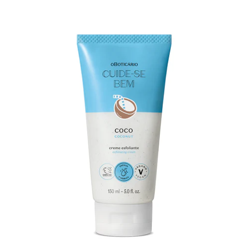 Com Cuide-se Bem Feira, a feira é diferente, está em toda a parte, onde quer que vás! O Creme Esfoliante Corporal Cuide-se Bem Feira Coco auxilia na esfoliação e contém óleo de coco, que hidrata intensamente a tua pele. O toque especial? Cascas de coco*, para um cheirinho verdadeiramente cremoso e aconchegante. Com 94%** de ingredientes naturais, é vegan e ideal para uma rotina mais prática, leve e sustentável.