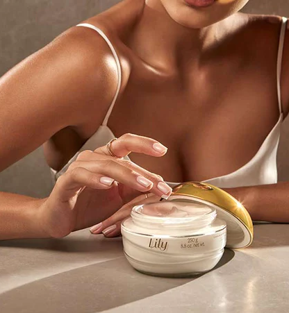 O Creme Acetinado Lily tem um toque aveludado e um delicioso aroma marcante que dura o dia inteiro. Este creme hidratante para mulher possui uma textura especial, mais densa. Tem como principal ingrediente a manteiga de Karité, que contém grande concentração de vitamina E, o que a torna num ótimo antioxidante. Esse ingrediente especial forma uma película sobre a pele que promove uma hidratação intensa, evitando a pele seca causada pelo sol e pelo clima frio e seco.