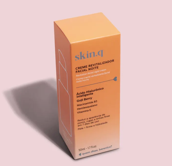O Skin.q Creme Revitalizante Facial Noite é um creme fluído de textura leve, refrescante e com rápida absorção. Seus ativos aceleram a regeneração celular e restauram a vitalidade da pele, diminuindo o aspecto de poros, rugas e linhas de expressão. Tudo isso enquanto dorme. Com 1 semana de uso, você já vê resultado: pele mais firme e hidratada.