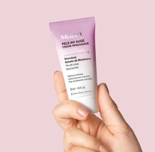 "O Creme Renovador Pele no Auge Skin.q deixa a tua pele radiante sem sensibilizar, prevenindo os primeiros sinais de envelhecimento. Formulado com ativos de alta performance para deixar a tua pele renovada e sempre no auge, além de hidratada, e iluminada, sem complicações. Este creme facial para senhora pode ser usado tanto de dia quanto à noite.